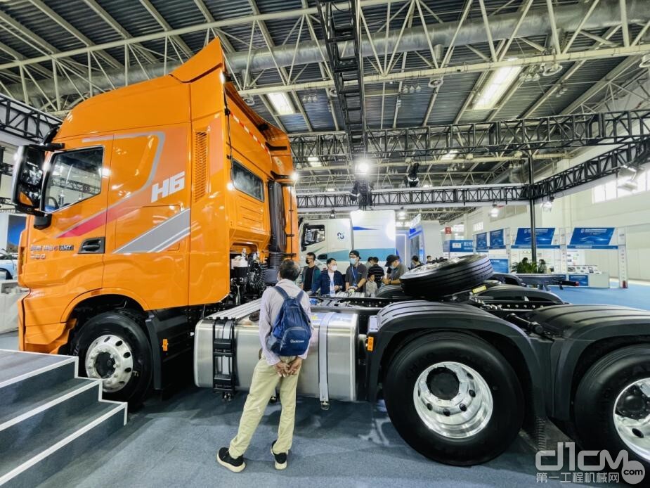 展會(huì)現(xiàn)場(chǎng),兩只“大白”——純電、氫能新能源重卡相當(dāng)矚目。高大耀眼的紅巖杰獅H6充換一體純電動(dòng)牽引車,具有“跑得快、提速快、換電快”三大優(yōu)勢(shì),3-5分鐘即可完成電池更換,且搭載先進(jìn)成熟的282Kw?h寧德時(shí)代動(dòng)力電池,配備玖行換電箱,動(dòng)力響應(yīng)速度快,加速性能優(yōu)秀,可適用于港口駁運(yùn)、園區(qū)物流、短途干線運(yùn)輸?shù)榷喾N使用場(chǎng)景,成為物流運(yùn)輸產(chǎn)業(yè)綠色轉(zhuǎn)型、動(dòng)能升級(jí)的優(yōu)選。