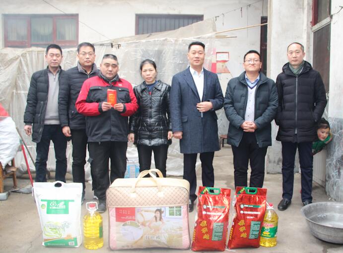 本次活動由董事長趙永濤先生親自帶領(lǐng)著綜合副總李勝利,生產(chǎn)副總李忠亞,人資經(jīng)理張新寧,車間主管田彥峰、李孝鵬、郭洪武等人攜帶著禮品走訪困難職工,并為他們帶去新年的祝福。