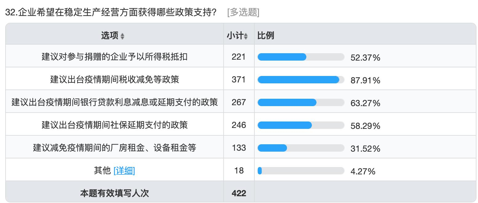備注:有企業(yè)呼吁“各種稅費和利息應(yīng)該是減免而不是延期““盡快恢復物流”等。