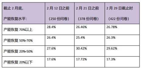5. 企業(yè)預(yù)計 2 月底前的產(chǎn)能恢復情況: