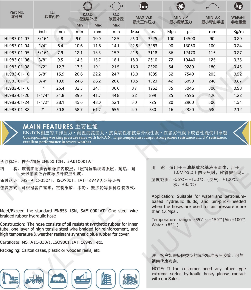 符合/超越EN8531SN/SAE 10OR1AT一層鋼絲編織耐高低溫橡膠軟管