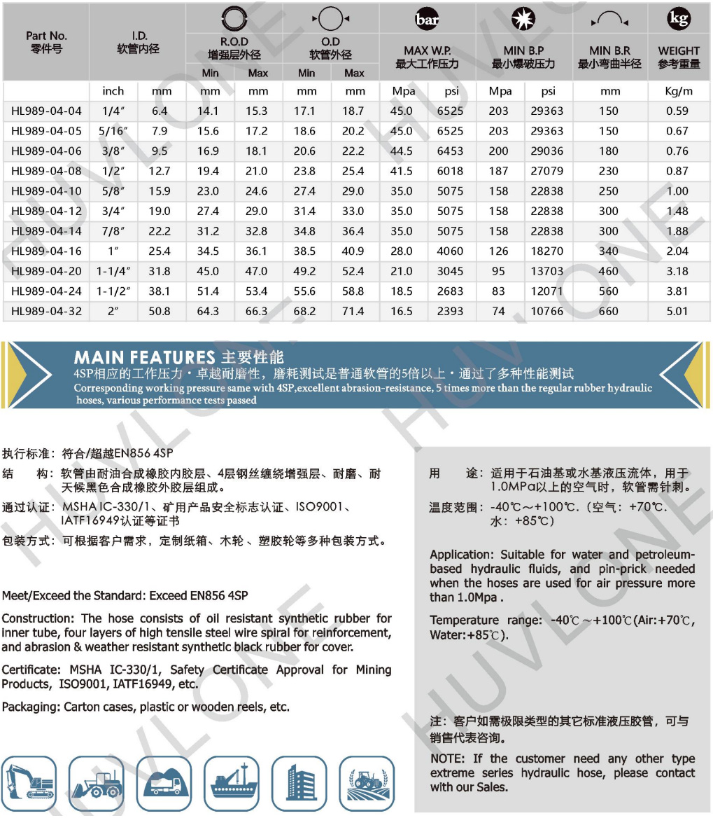 產(chǎn)品用途:適用于石油基或水基液壓流體,用于1.0MPa以上的空氣時(shí),軟管需針刺。