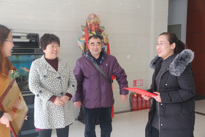 2017年2月24日上午10點(diǎn),漯河市工商局辦公室張主任、漯河經(jīng)濟(jì)開(kāi)發(fā)區(qū)工商分局于局長(zhǎng)及漯河經(jīng)濟(jì)開(kāi)發(fā)區(qū)后謝鎮(zhèn)工商所劉所長(zhǎng)一行來(lái)到公司,對(duì)匯龍液壓獲得“2016年度文明誠(chéng)信企業(yè)”進(jìn)行授牌及表彰,公司總經(jīng)理趙會(huì)芳代表公司接受榮譽(yù)并合影留念。
