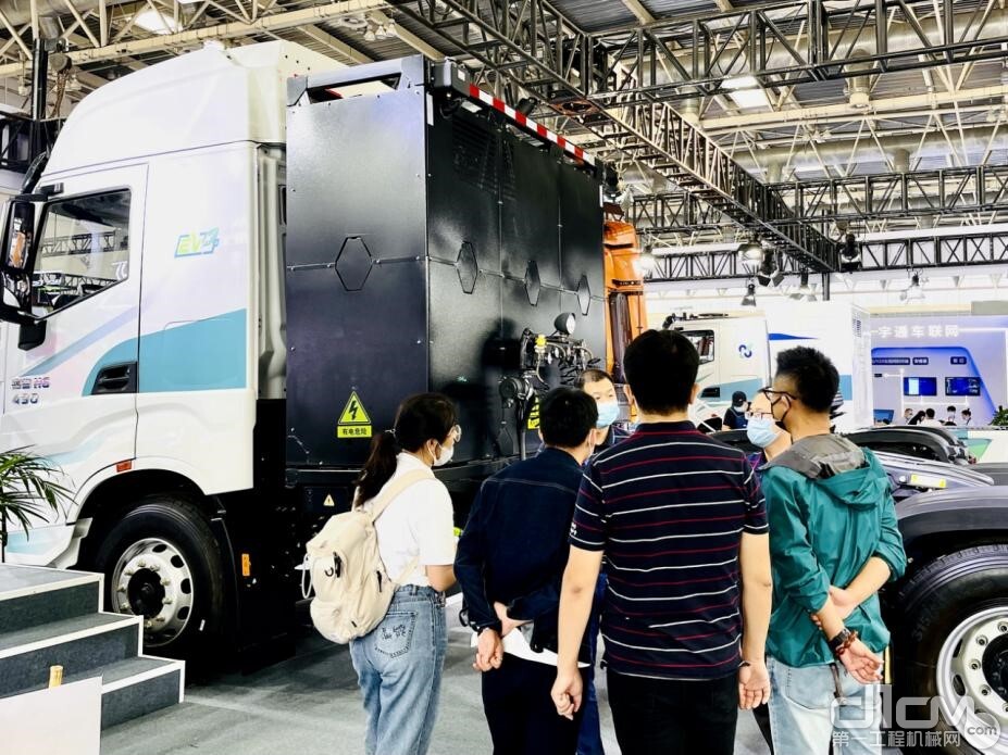 展會現(xiàn)場,兩只“大白”——純電、氫能新能源重卡相當(dāng)矚目。高大耀眼的紅巖杰獅H6充換一體純電動牽引車,具有“跑得快、提速快、換電快”三大優(yōu)勢,3-5分鐘即可完成電池更換,且搭載先進成熟的282Kw?h寧德時代動力電池,配備玖行換電箱,動力響應(yīng)速度快,加速性能優(yōu)秀,可適用于港口駁運、園區(qū)物流、短途干線運輸?shù)榷喾N使用場景,成為物流運輸產(chǎn)業(yè)綠色轉(zhuǎn)型、動能升級的優(yōu)選。