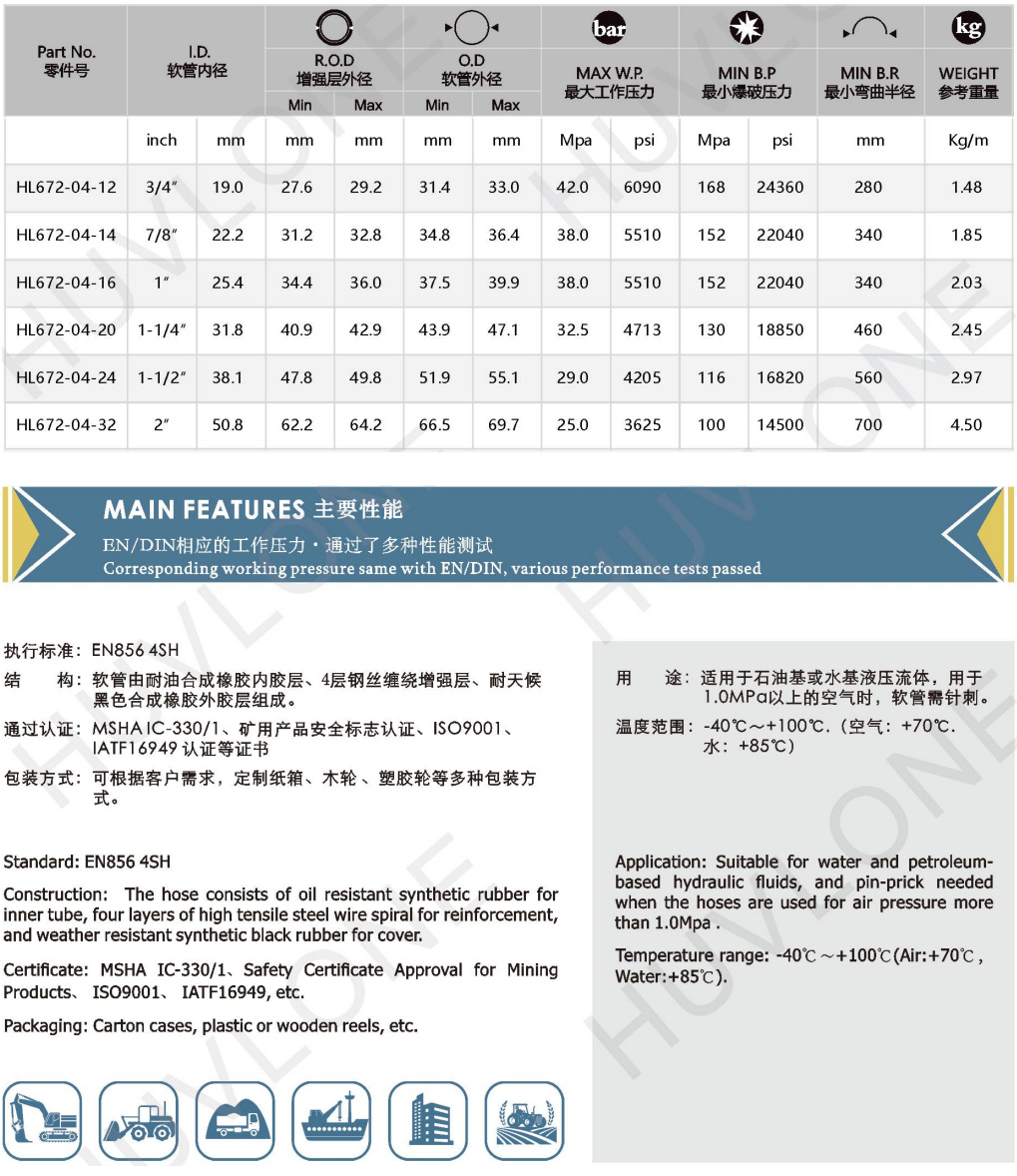 DIN EN856 4SH: Four steel wires spiral rubber hydraulic hose