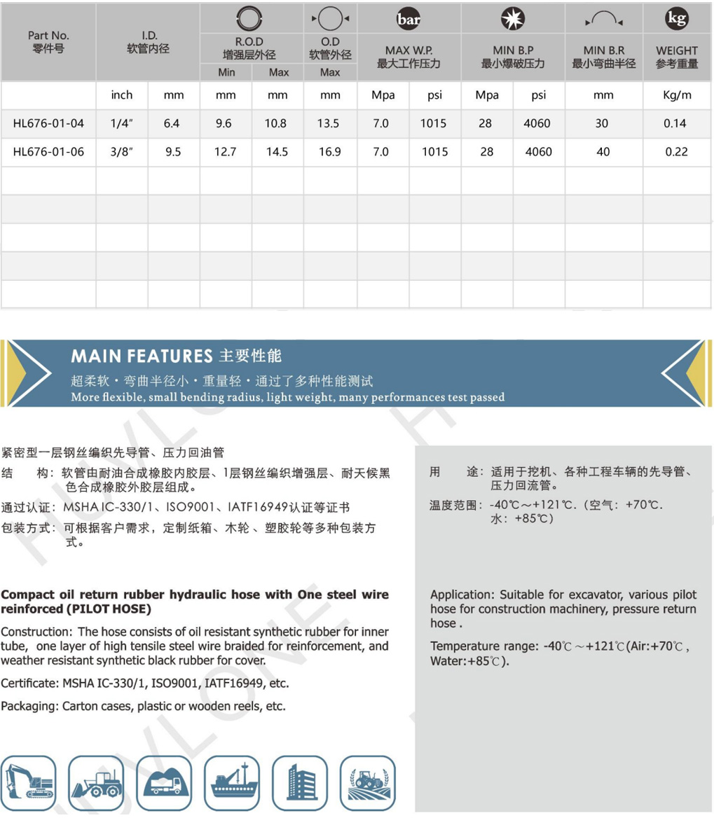 Product Usage:uitable for excavator,various pilothose for construction machinery, pressure returnhose.