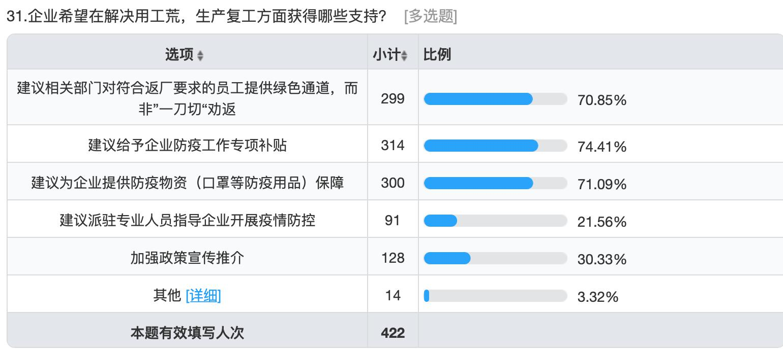 備注:有企業(yè)呼吁“各種稅費和利息應該是減免而不是延期““盡快恢復物流”等。