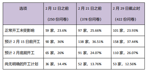 5. 企業(yè)預計 2 月底前的產能恢復情況: